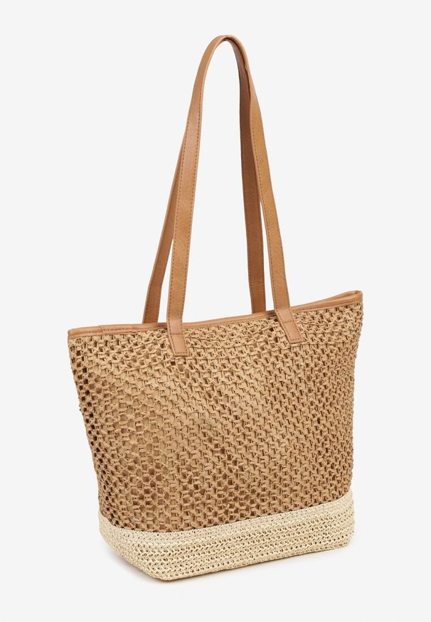 Renee - Ciemnobeżowa Pleciona Torebka Typu Shopperka Galmeira. Kolor: beżowy. Sezon: lato. Styl: casual