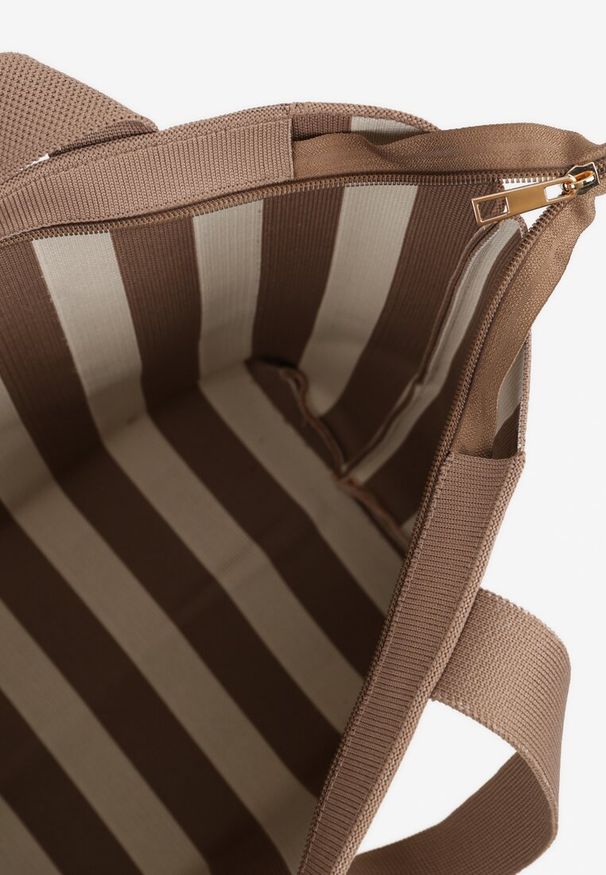 Born2be - Ciemnobeżowa Pleciona Torebka Shopperka Revine. Kolor: beżowy. Styl: casual