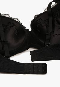 Renee - Czarno-Czerwony Biustonosz Push-Up z Koronki Ozdobiony Metalową Aplikacją Arissta. Kolor: czarny. Materiał: koronka. Rodzaj stanika: push-up. Wzór: koronka, aplikacja