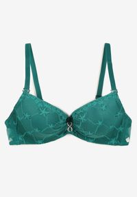 Renee - Zielony Koronkowy Biustonosz Typu Push Up z Metaliczną Ozdobą Nelisea. Kolor: zielony. Materiał: koronka. Rodzaj stanika: push-up. Wzór: aplikacja
