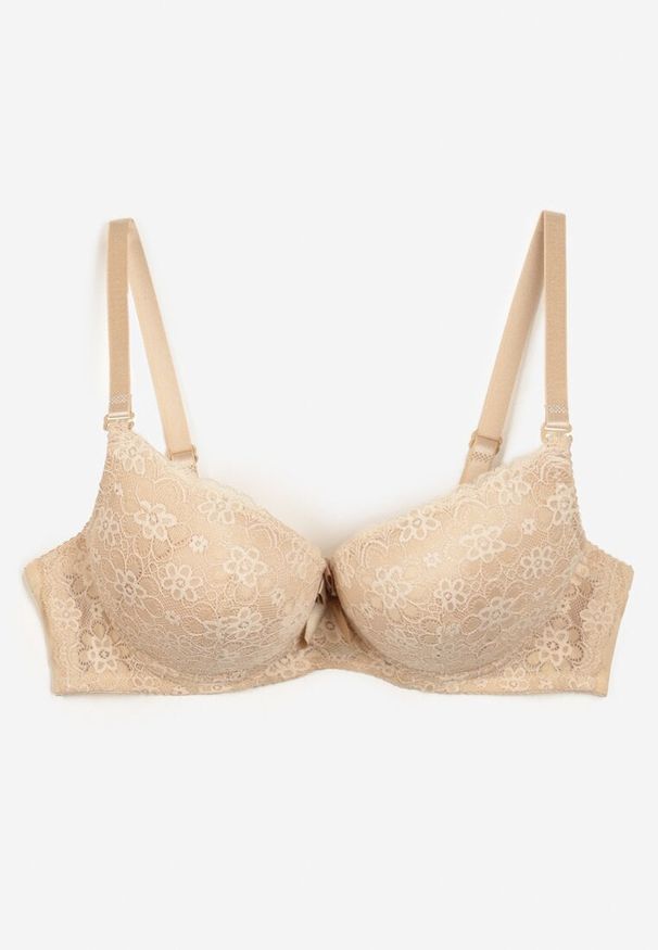 Born2be - Jasnobeżowy Biustonosz o Fasonie Push Up Zdobiony Koronką Morgis. Kolor: beżowy. Materiał: koronka. Rodzaj stanika: push-up. Wzór: koronka, aplikacja