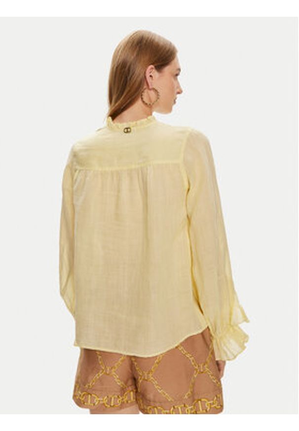 Renee - Jasnożółta Klasyczna Bluzka z Falbankami przy Rękawach Sarisca. Okazja: na co dzień, do pracy. Typ kołnierza: kołnierz z falbankami. Kolor: żółty. Materiał: jeans. Styl: klasyczny