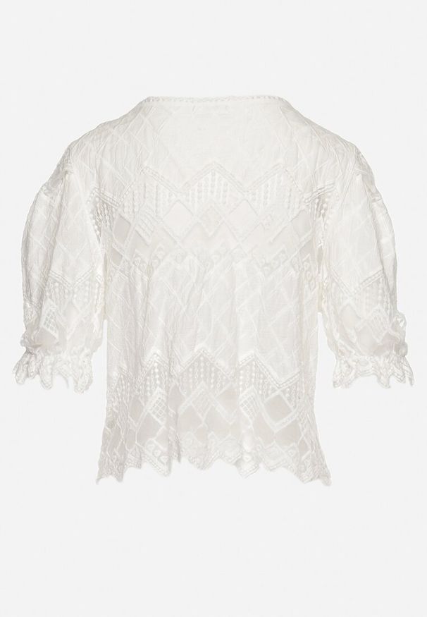 Born2be - Biała Koszulowa Bluzka z Plisowaną Falbaną na Ramionach Shyllita. Typ kołnierza: kołnierz z falbankami. Kolor: biały. Sezon: wiosna, lato