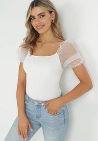 Awama - Biała Letnia Bluzka z Hiszpańskim Dekoltem. Kolor: biały. Materiał: wiskoza, elastan. Sezon: lato