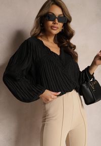 Born2be - Beżowa Koronkowa Bluzka z Dodatkiem Wiskozy Zdobiona Wiązaniem Saniviana. Okazja: na co dzień, do pracy, na spotkanie biznesowe. Typ kołnierza: dekolt w serek. Kolor: beżowy. Materiał: koronka, wiskoza. Długość rękawa: długi rękaw. Długość: długie. Wzór: aplikacja. Styl: biznesowy, casual
