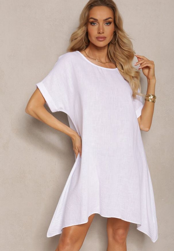 Renee - Biała Koronkowa Bluzka z Bawełny z Guzikami Wedidia. Okazja: na spotkanie biznesowe. Kolor: biały. Materiał: koronka, bawełna. Długość rękawa: krótki rękaw. Długość: krótkie. Wzór: koronka. Styl: biznesowy, elegancki