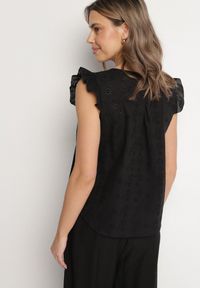 Born2be - Czarna Wiskozowa Bluzka z Naszywką Ozdobioną Cekinami i Kryształkami Ledgia. Kolor: czarny. Materiał: wiskoza. Wzór: aplikacja. Sezon: lato