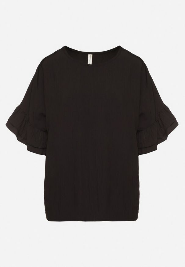 Renee - Czarna Bluzka z Wiskozą Ozdobiona Falbankami Fadelena. Typ kołnierza: kołnierz z falbankami. Kolor: czarny. Materiał: wiskoza. Wzór: aplikacja