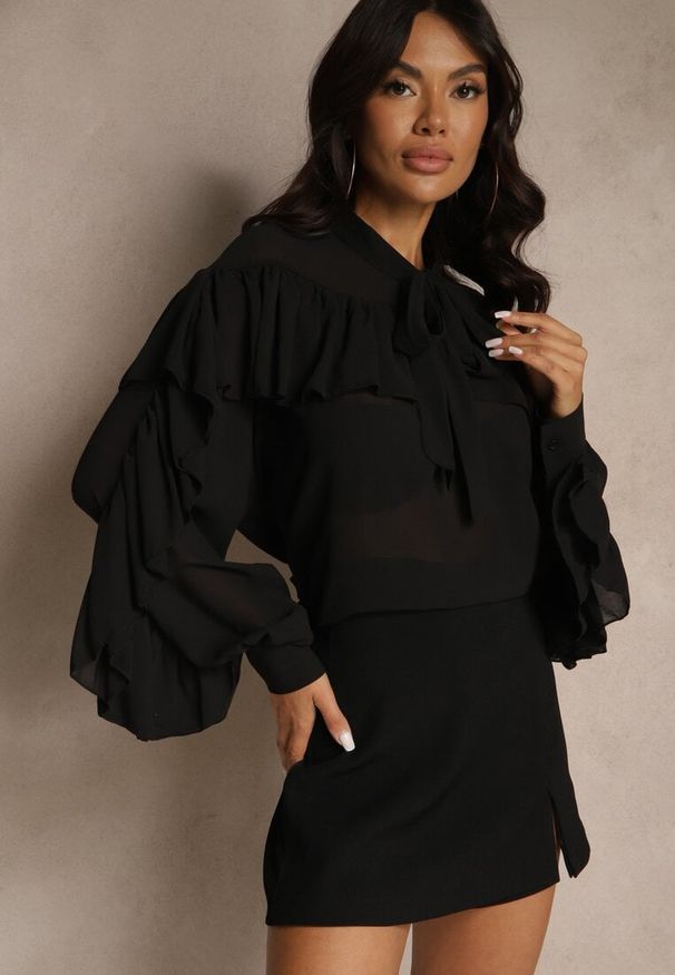 Renee - Różowa Bluzka z Wiskozą Ozdobiona Falbankami Fadelena. Typ kołnierza: kołnierz z falbankami. Kolor: różowy. Materiał: wiskoza. Wzór: aplikacja