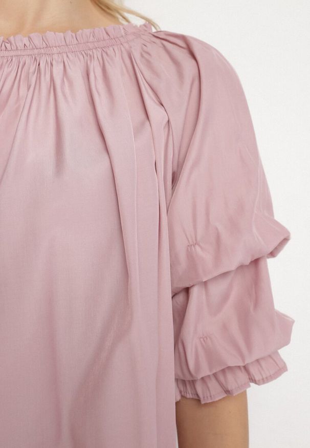 Wyprzedaż - różowe bluzki damskie z falbaną Born2be