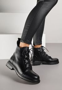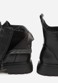 Renee - Czarne Traperki Workery z Futerkiem na Grubej Podeszwie Dathi. Zapięcie: sznurówki. Kolor: czarny. Materiał: futro