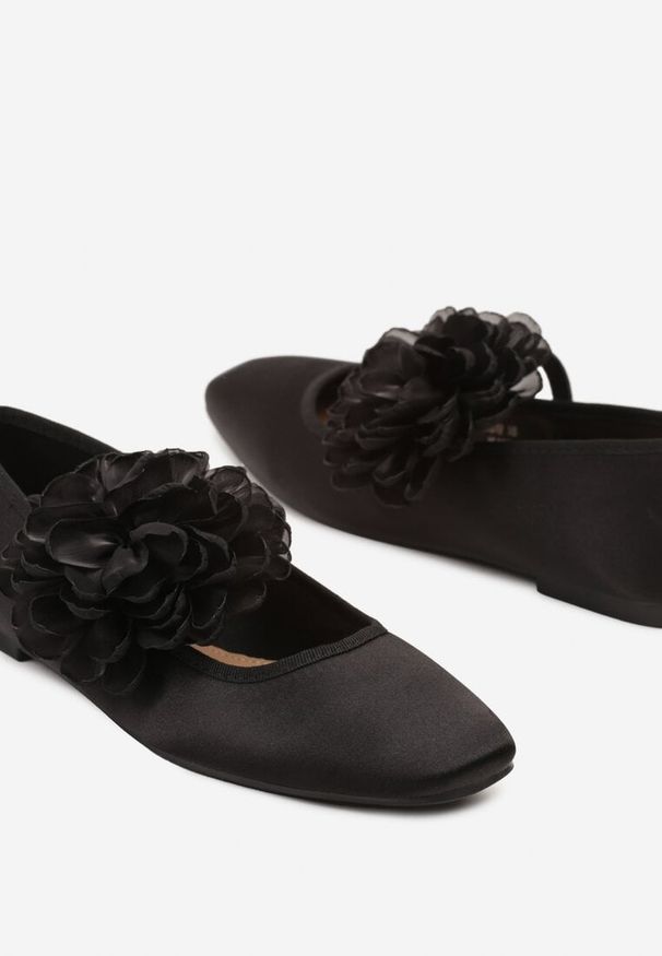 Renee - Czarne Sandały Achenia. Zapięcie: rzepy. Kolor: czarny. Materiał: tiul, materiał. Wzór: aplikacja, kwiaty, jednolity, paski. Obcas: na płaskiej podeszwie