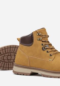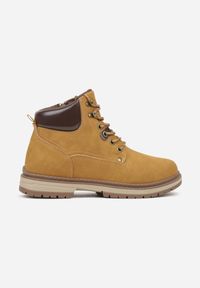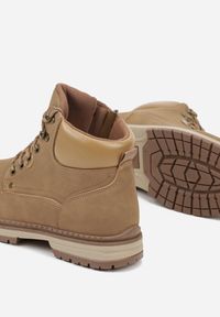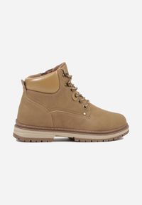 Born2be - Ciemnobeżowe Trapery Trzewiki Ozdobione Przeszyciami Zobelle. Okazja: na co dzień. Kolor: beżowy. Materiał: jeans. Wzór: aplikacja. Styl: casual, klasyczny, elegancki