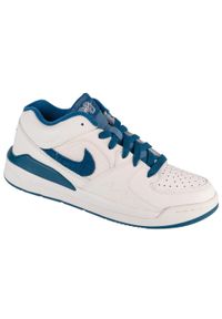 Renee - Biało-Niebieskie Sznurowane Sneakersy na Niskiej Platformie z Imitacji Skóry Ajanfa. Kolor: biały. Materiał: skóra. Obcas: na platformie