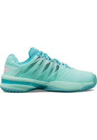 Buty do tenisa damskie K-Swiss Hypercourt Express 2. Kolor: biały, niebieski, wielokolorowy, zielony. Materiał: syntetyk, materiał. Szerokość cholewki: normalna. Sport: tenis