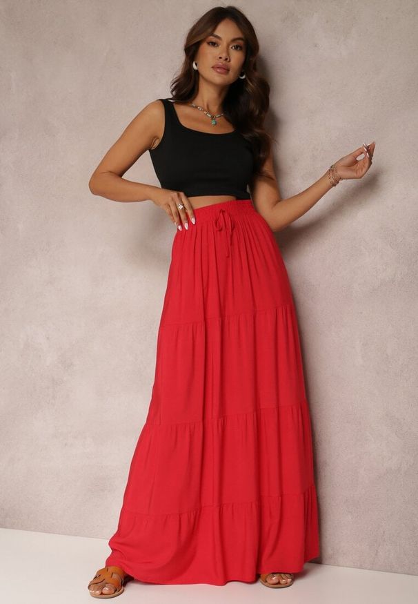 Renee - Biała Rozkloszowana Spódnica Maxi z Wiskozy z Materiałowymi Paskami Wintelis. Okazja: na co dzień, na spotkanie biznesowe, na imprezę. Kolor: biały. Materiał: wiskoza, materiał. Wzór: kolorowy, paski. Sezon: lato. Styl: biznesowy, casual, wakacyjny, elegancki