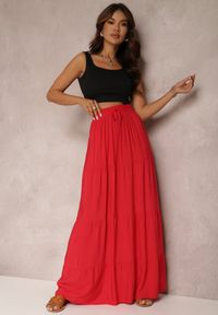 Renee - Biała Rozkloszowana Spódnica Maxi z Wiskozy z Materiałowymi Paskami Wintelis. Okazja: na co dzień, na spotkanie biznesowe, na imprezę. Kolor: biały. Materiał: wiskoza, materiał. Wzór: kolorowy, paski. Sezon: lato. Styl: biznesowy, casual, wakacyjny, elegancki