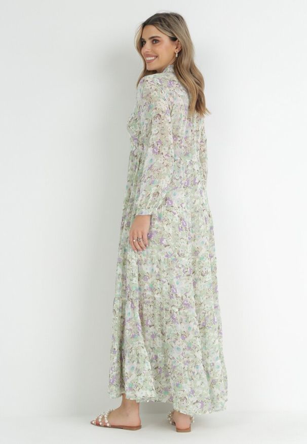 Renee - Jasnozielona Długa Sukienka z Rozkloszowanym Dołem i Koszulową Górą Kitesi. Kolor: zielony. Typ sukienki: koszulowe. Długość: maxi