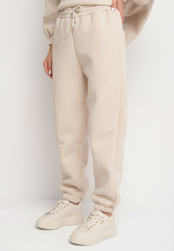 Born2be - Beżowy Bawełniany Komplet Dresowy z Bluzą i Spodniami Zansira. Kolor: beżowy. Materiał: bawełna, dresówka