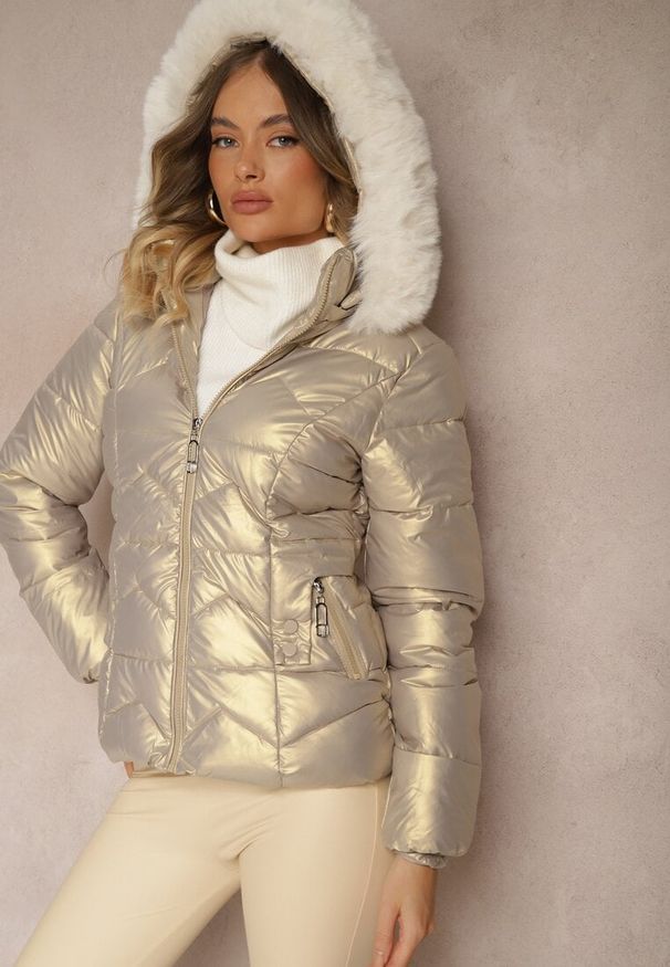 Born2be - Beżowa Kurtka Futerko na Suwak z Szerokim Kołnierzem Plinne. Okazja: na co dzień, do pracy, na spotkanie biznesowe. Typ kołnierza: golf. Kolor: beżowy. Materiał: futro. Styl: biznesowy, klasyczny, casual, elegancki