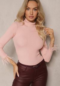 Renee - Różowy Golf Irinsyss. Typ kołnierza: golf. Kolor: różowy. Materiał: dzianina. Długość: długie. Wzór: prążki