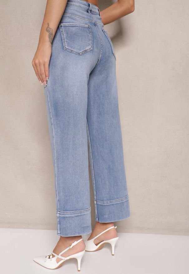Born2be - Jasnoniebieskie Klasyczne Dopasowane Jeansy na Suwak z Przetarciami Anenstala. Okazja: na co dzień. Stan: podwyższony. Kolor: niebieski. Styl: klasyczny