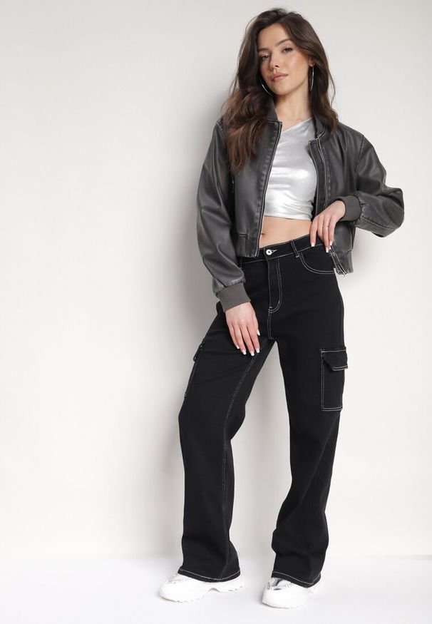 Renee - Czarne Jeansy Szerokie Phririope. Okazja: na co dzień. Stan: podwyższony. Kolor: czarny. Wzór: aplikacja. Styl: casual, elegancki