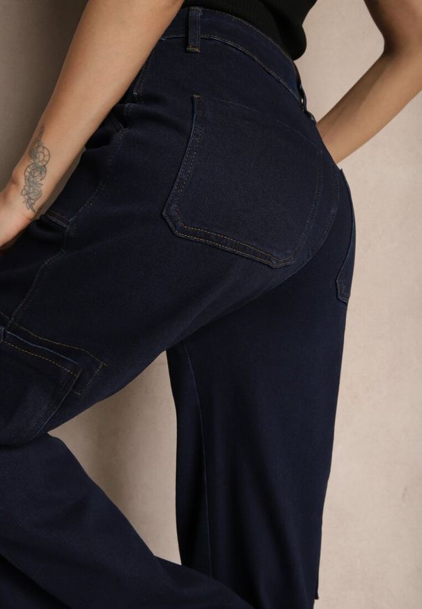 Renee - Niebieskie 2w1 Jeansy Szorty z Szerokimi Kieszeniami w Stylu Cargo Alace. Stan: podwyższony. Kolor: niebieski. Długość: krótkie