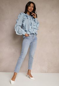 Renee - Niebieskie Jeansy Skinny Regular Waist z Bawełną Tevirsa. Okazja: na co dzień. Kolor: niebieski. Styl: klasyczny, casual, elegancki