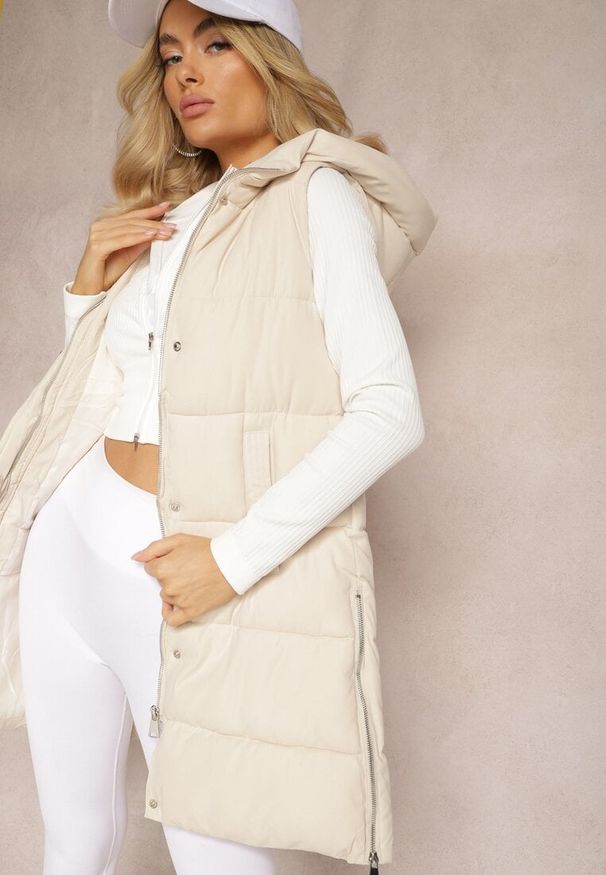 Renee - Jasnobeżowa Dwustronna Kamizelka z Kapturem Zelini. Typ kołnierza: kaptur. Kolor: beżowy
