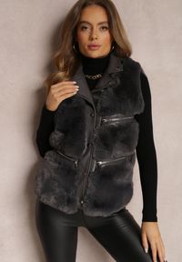 Born2be - Szara Kamizelka Futrzana z Kapturem Sophal. Typ kołnierza: kaptur. Kolor: szary. Materiał: futro
