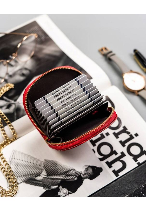 MILANO DESIGN - Mała portmonetka damska Milano Design SF1840-JM czerwona. Kolor: czerwony. Materiał: skóra ekologiczna