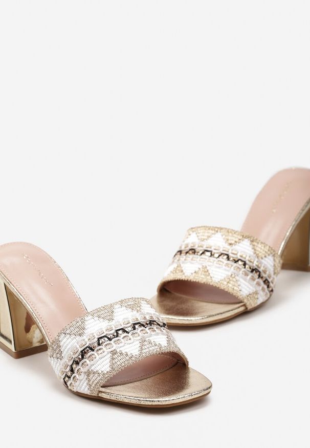 Born2be - Białe Tweedowe Klapki na Obcasie z Ozdobą Sesielisa. Kolor: biały. Materiał: materiał. Wzór: aplikacja. Obcas: na obcasie. Styl: klasyczny, elegancki. Wysokość obcasa: średni