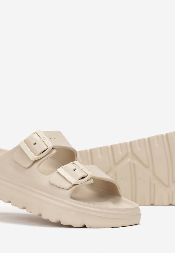 Born2be - Beżowe Klapki na Platformie ze Sznurka z Szerokim Paskiem i Odkrytym Noskiem Lillani. Kolor: beżowy. Obcas: na platformie