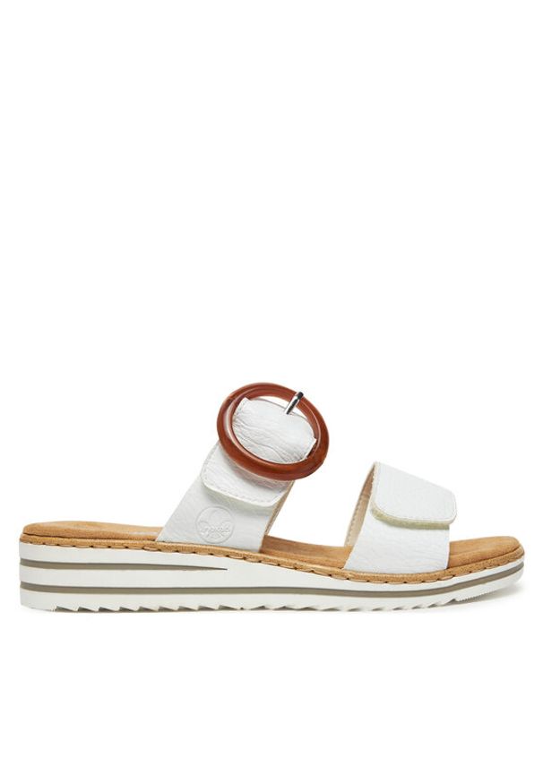 Rieker - RIEKER 60888-80 weiss, klapki damskie. Kolor: biały. Obcas: na koturnie