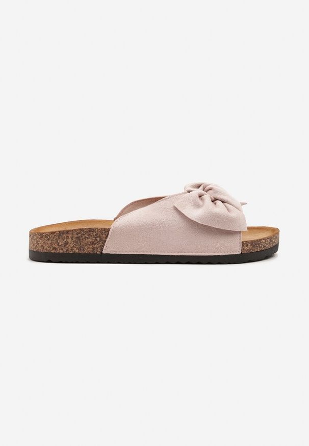 Renee - Beżowe Klapki na Grubej Podeszwie z Aplikacją w Kształcie Kokardy Quilfea. Okazja: na co dzień, na plażę. Kolor: beżowy. Materiał: jeans. Wzór: aplikacja. Styl: klasyczny, casual