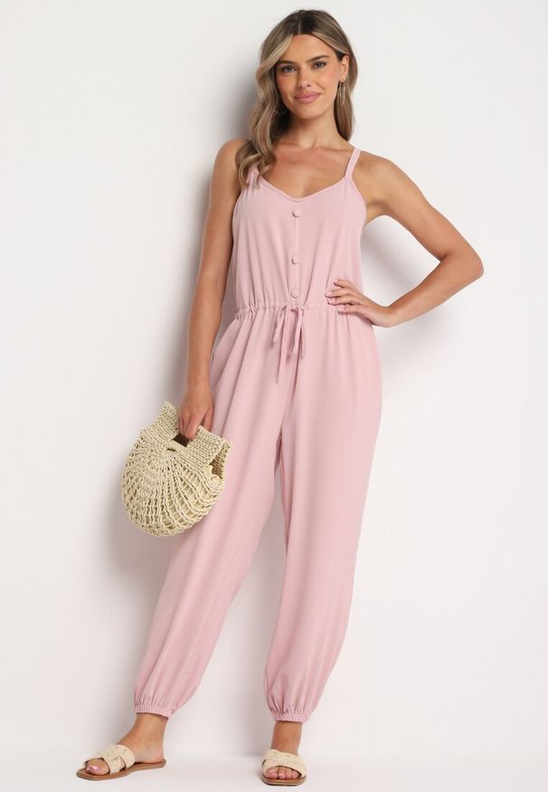 Renee - Jasnopomarańczowy Kombinezon Bawełniany Wina. Okazja: na co dzień. Kolor: różowy. Materiał: bawełna. Długość: krótkie. Wzór: gładki. Sezon: lato. Styl: casual
