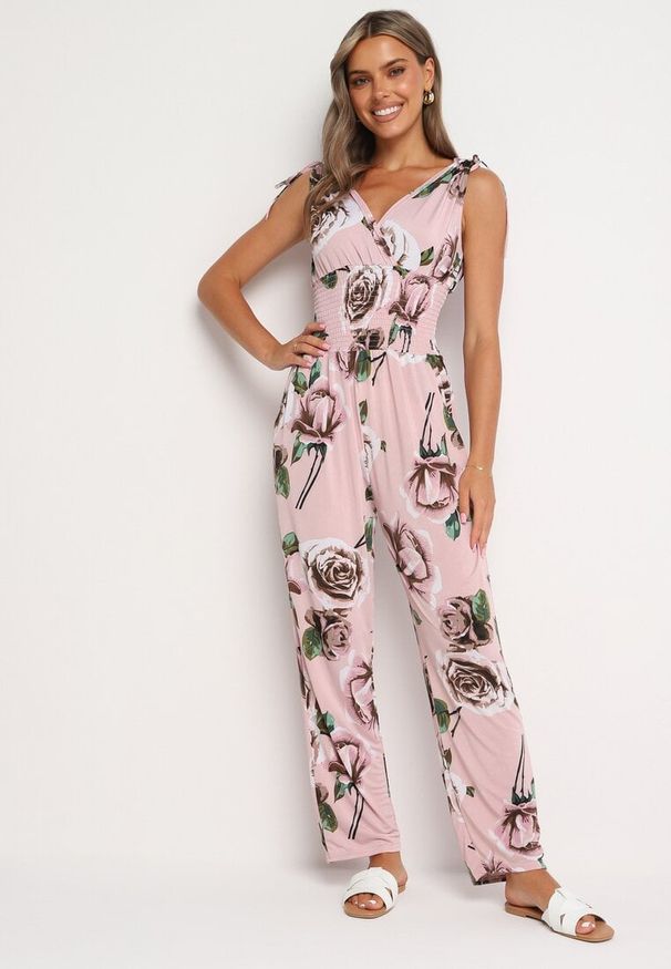 Renee - Różowy Kombinezon z Szerokimi Nogawkami i Gumkami w Talii Adriannae. Kolor: różowy. Długość rękawa: bez rękawów. Długość: długie. Wzór: gładki. Sezon: wiosna, lato