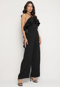 Renee - Czarny Kombinezon z Dekoltem Typu Halter i Gumką w Talii Zolefia. Kolor: czarny. Długość: długie. Styl: elegancki