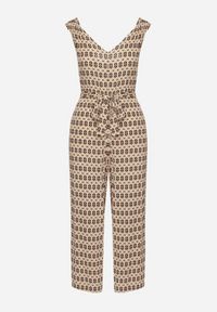 Born2be - Ciemnoszary Kombinezon z Wiskozą w Abstrakcyjny Wzór z Wiązanym Paskiem Nailaura. Okazja: na co dzień. Kolor: szary. Materiał: wiskoza. Styl: klasyczny, casual, elegancki