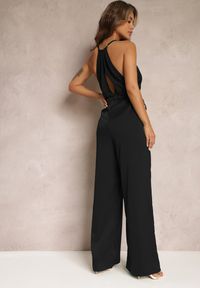 Renee - Czarny Elegancki Kombinezon z Odkrytymi Plecami Zapinany na Guziki Formina. Kolor: czarny. Styl: elegancki