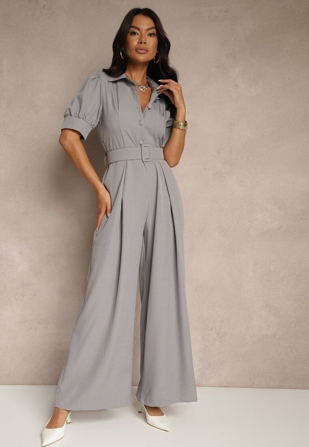 Renee - Szary Kombinezon w Stylu Utility Taliowany Liarael. Okazja: na co dzień. Kolor: szary. Materiał: tkanina. Styl: casual, elegancki