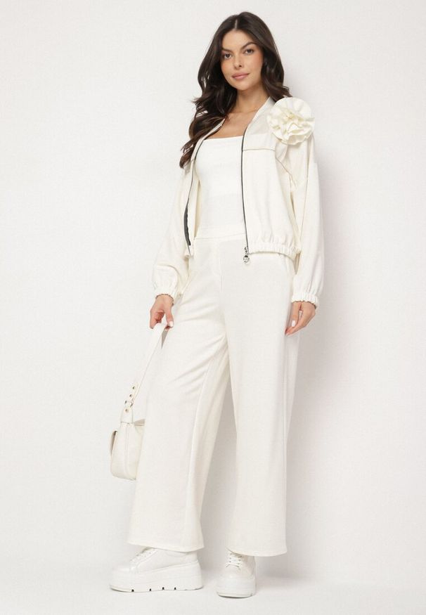 Born2be - Jasnobeżowy Dzianinowy Komplet z Wełną Spodnie i Sweter Tesira. Kolor: beżowy. Materiał: wełna, dzianina