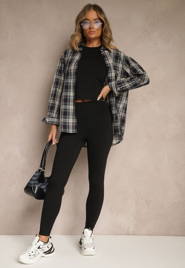 Renee - Czarny Komplet z Wiskozy w Stylu Oversize Szerokie Spodnie i Luźna Koszula na Guziki Natinne. Kolor: czarny. Materiał: wiskoza