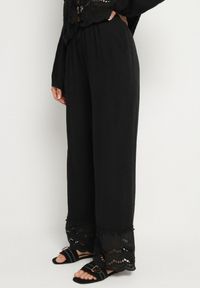 Born2be - Czarny Ażurowy Komplet z Bawełną Koszula i Szerokie Spodnie Folessae. Kolor: czarny. Materiał: bawełna. Wzór: ażurowy