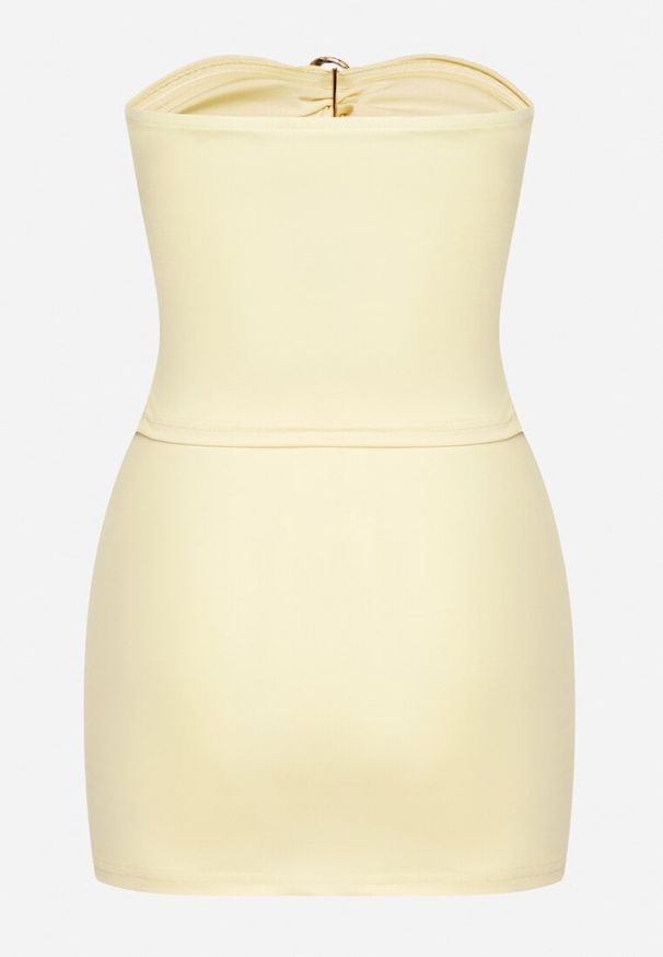 Born2be - Beżowy Komplet Spódnica z Trenem i Top na Ramiączkach z Rękawami Adivana. Kolor: beżowy. Materiał: materiał. Wzór: aplikacja