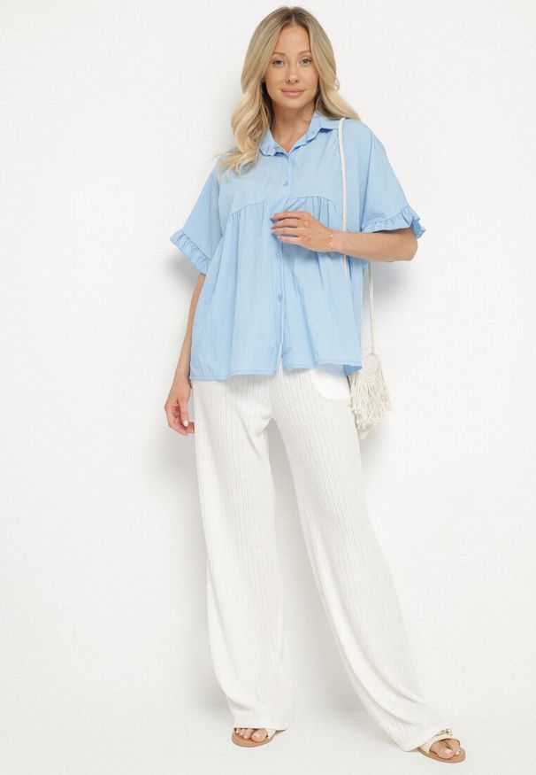 Born2be - Biała Wiskozowa Koszula Zapinana na Guziki z Rękawem Długości 3/4 i Wzorem w Kwiaty Xebbia. Okazja: na co dzień, do pracy, na spotkanie biznesowe. Kolor: biały. Materiał: wiskoza. Wzór: kwiaty. Styl: biznesowy, casual