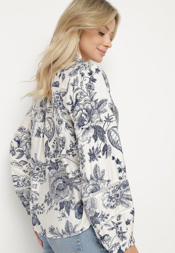 Born2be - Biała Koszula z Bawełny i Wiskozy w Łańcuszkowy Wzór Zirenia. Okazja: na co dzień. Typ kołnierza: kołnierzyk klasyczny. Kolor: biały. Materiał: bawełna, wiskoza. Długość rękawa: długi rękaw. Długość: długie. Wzór: aplikacja. Styl: klasyczny, casual, elegancki