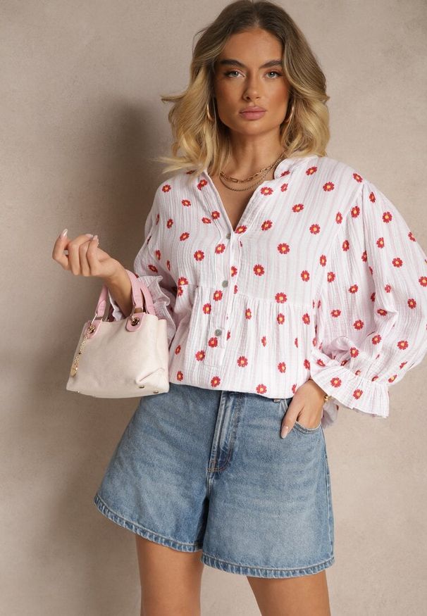 Renee - Biała Bawełniana Koszula z Kołnierzem i Falbanką Chrissa. Okazja: na co dzień. Typ kołnierza: kołnierzyk klasyczny, kołnierz z falbankami. Kolor: biały. Materiał: bawełna. Długość rękawa: długi rękaw. Długość: długie. Styl: klasyczny, casual, elegancki