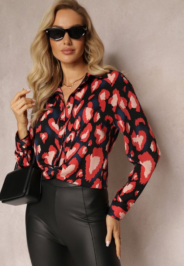 Born2be - Czarno-Czerwona Koszula w Cętki Loiphe. Kolor: czarny. Materiał: tkanina. Styl: klasyczny